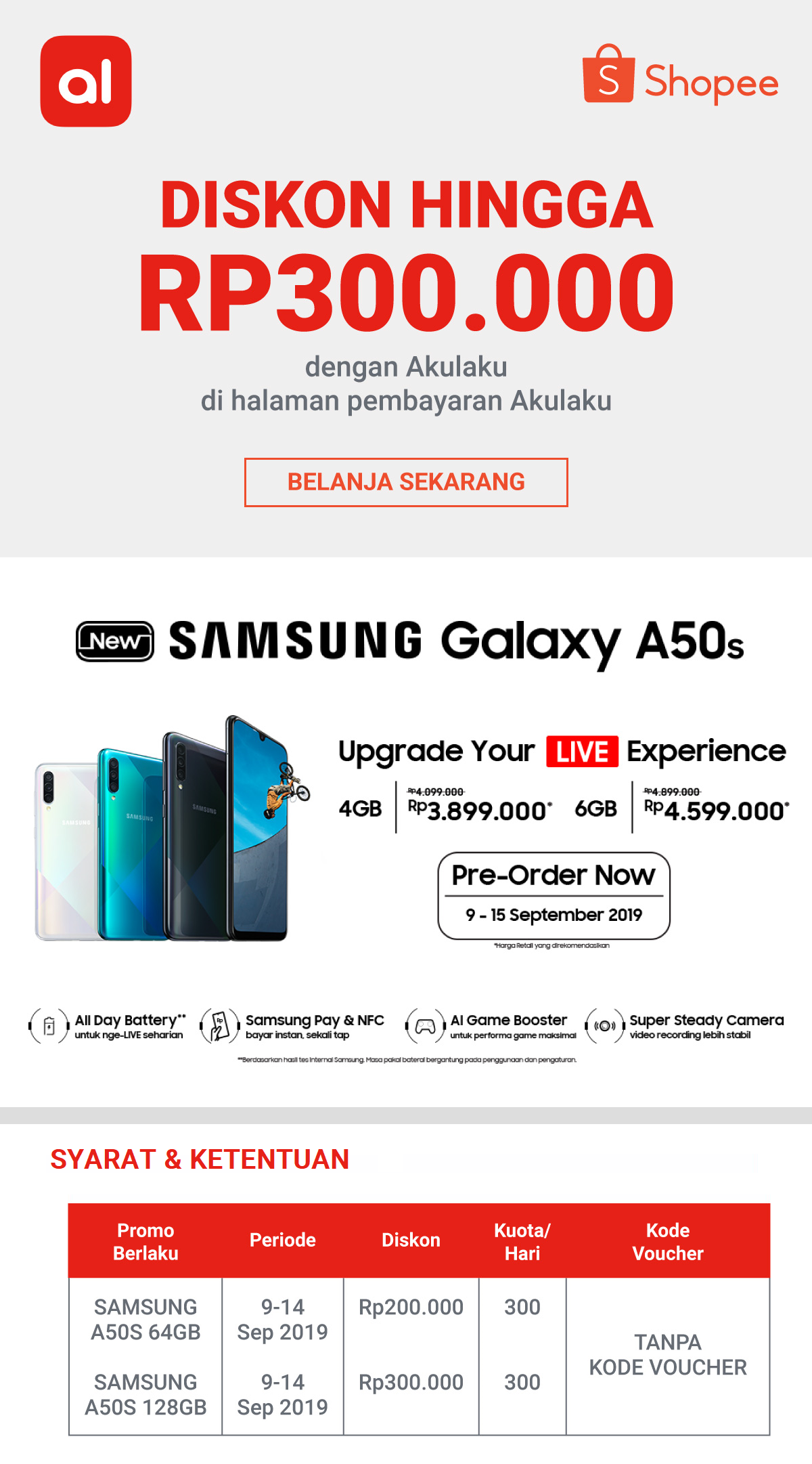 Diskon Samsung Galaxy A50s Dengan Akulaku 9 15 September 2019