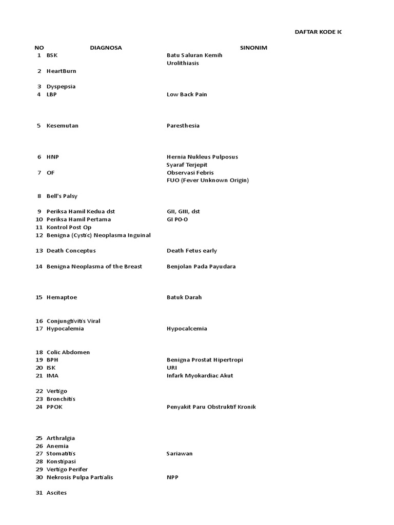 Kumpulan Kode Icd10 Yang Paling Sering Di Temukan