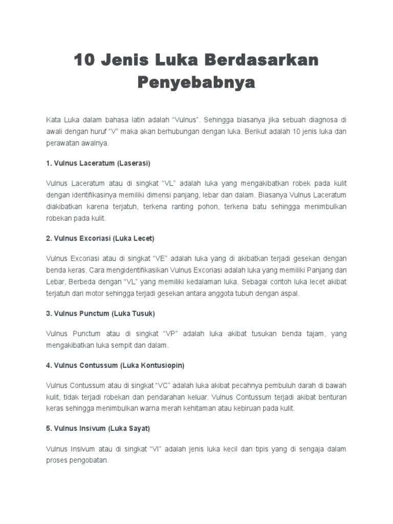 10 Jenis Luka Berdasarkan Penyebabnya Docx